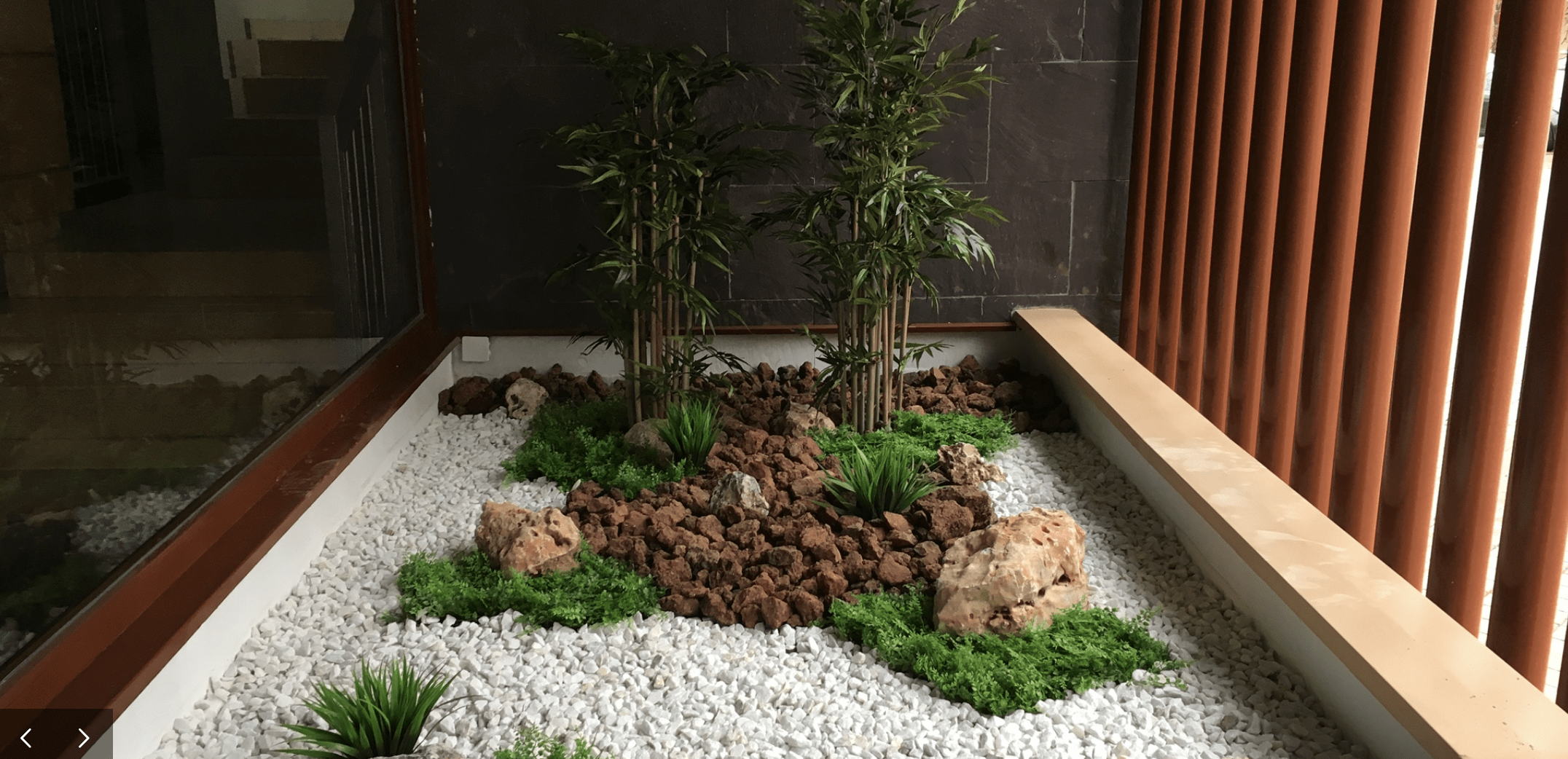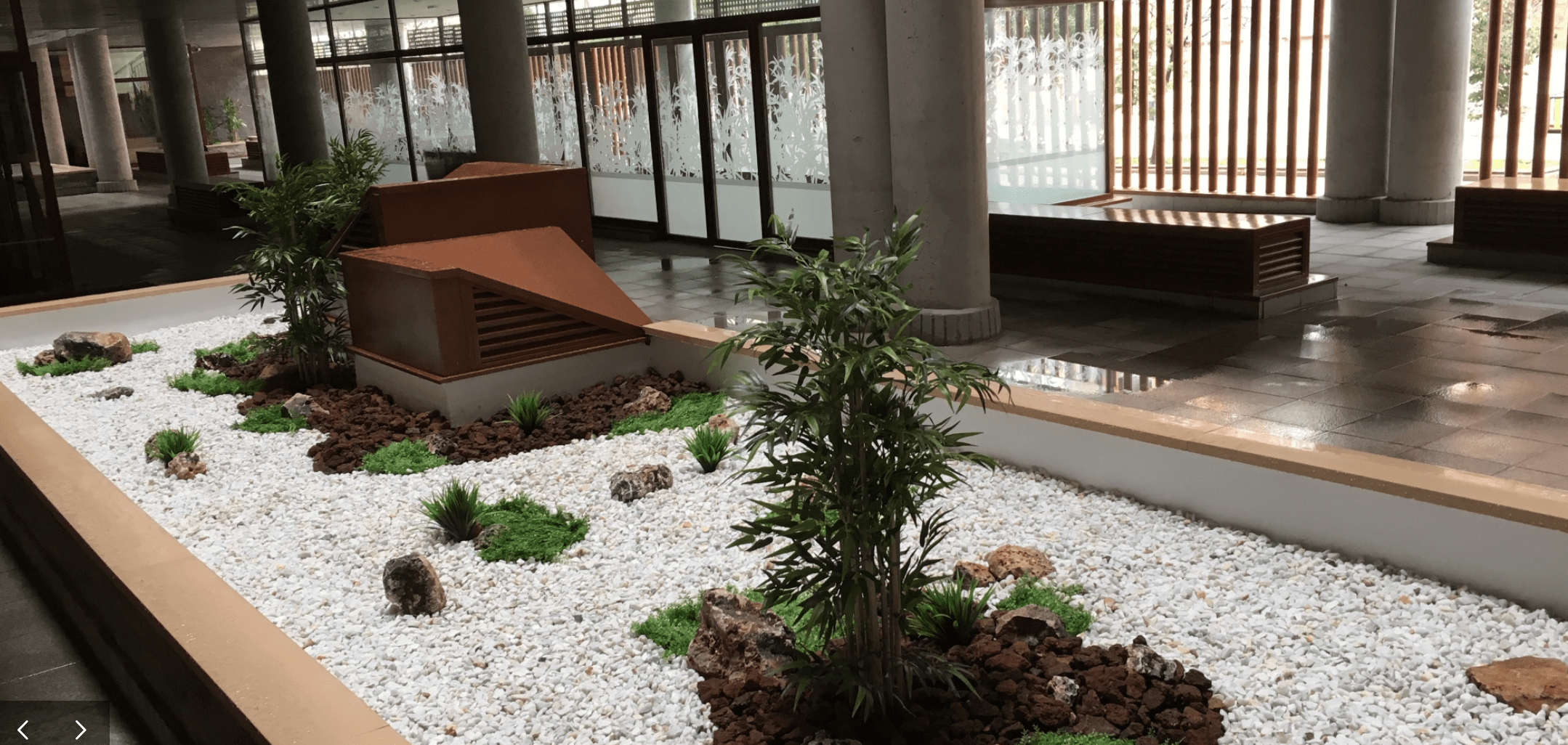 Así, la cuidada combinación de piedras y distintos áridos naturales con planta artificial en distintas variedades, dio como resultado rincones (de extensión variable en función de la ubicación), que ofrecían soluciones decorativas de alto valor estético y escaso mantenimiento.
